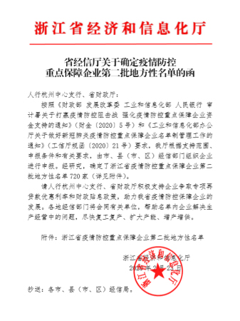浙江省经济和信息化厅发布疫情防控重点保障企业第二批地方性名单,杭州w66给利老牌生物技术有限公司名列其中