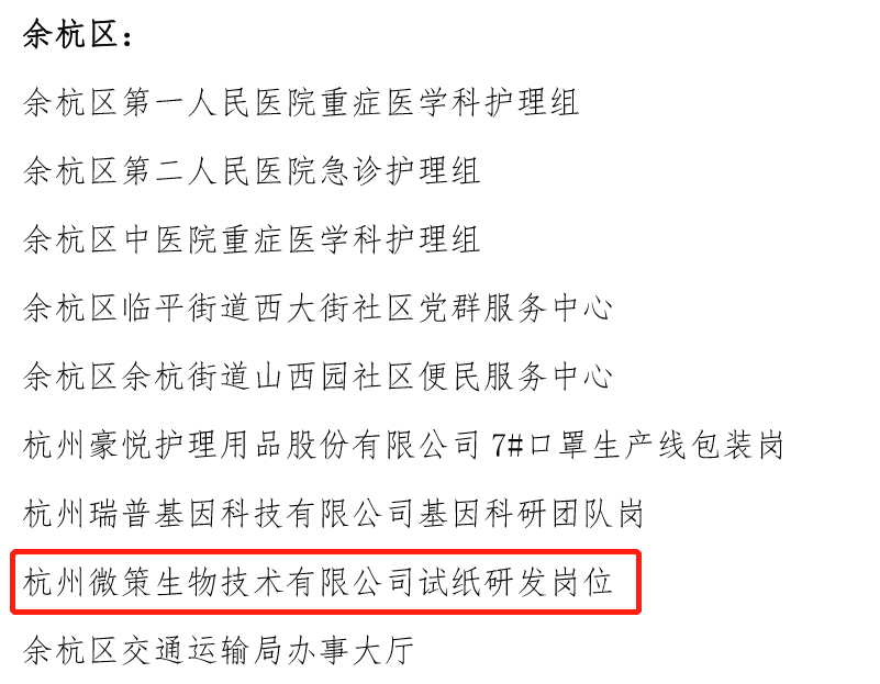 日前,杭州市妇联公布了“关于命名在抗击新冠肺炎疫情中作出突出贡献的 杭州市巾帼文明岗、巾帼建功标兵的通报”,w66给利老牌生物试纸研发岗位被命名为:在抗击新管肺炎疫情中作出突出贡献的杭州市巾帼文明岗!
