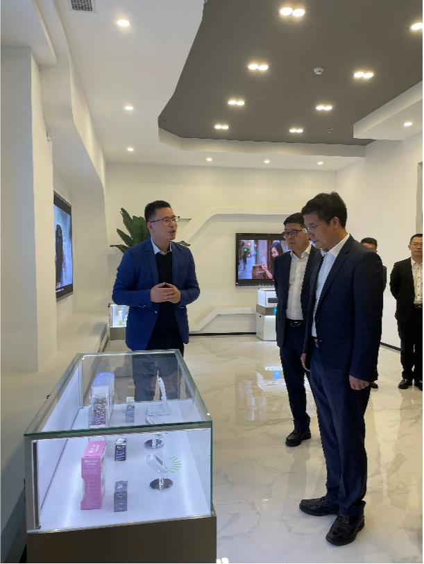 2021年3月31日,浙江省卫生委员会党委委员,副主任俞新乐,带领浙江省卫生健康委,在余杭区委常委,余杭经济技术开发区党工委书记、管委会主任祝振伟等领导的陪同下,走访利来w66·[国际]最给利的老牌 ,深入了解企业,解决企业临床研发方面的需求问题。走访中,w66给利老牌生物董事长杨蓉介绍了公司最新的5G产品并得到了领导们的肯定。